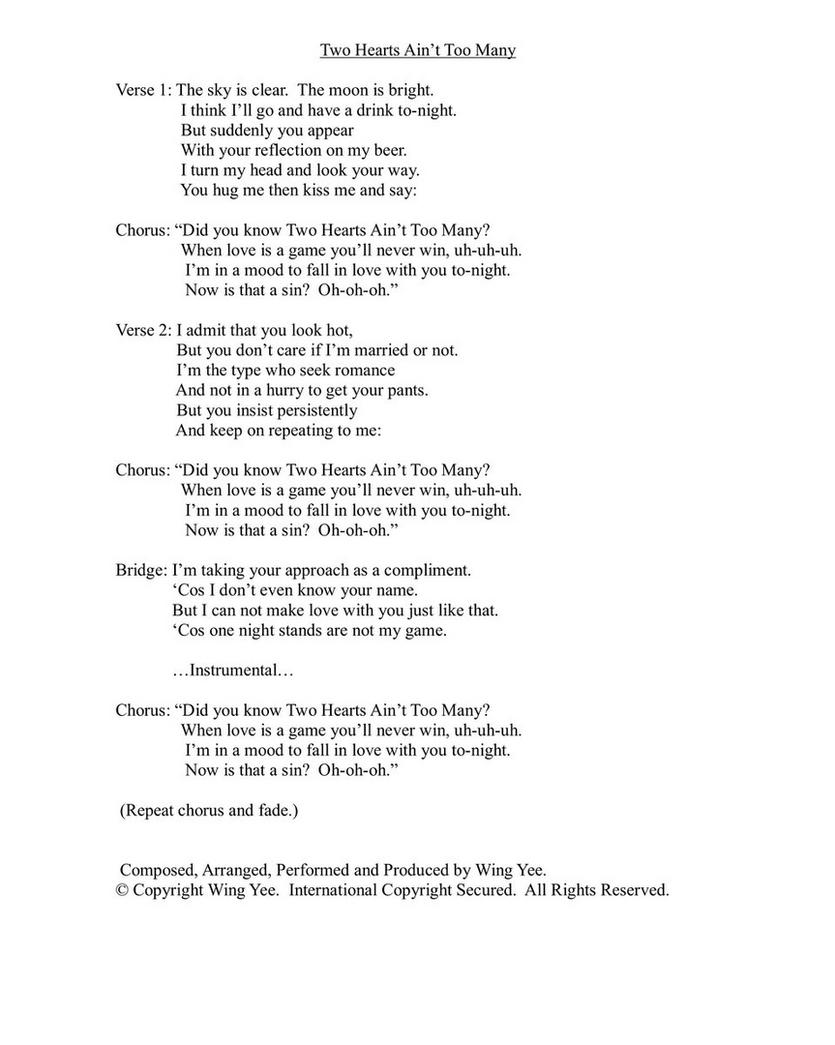 Words and Music by Wing Yee